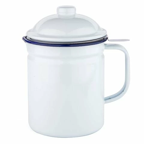 Enamel is distinct ā especially if itās Falcon enamelware. Since the 1920s, Falcon has filled British homes and kitchens with its pure white enamel bowls, tumblers and baking dishes, all with their tell-tale royal blue rim. It looks the part, and itās incredibly tough, as each piece is made by fusing porcelain onto heavy-gauge steel. If you drop it, it wonāt break. Itās resistant to chemicals. You can put it in the oven, and you can use it on gas and electric hobs.