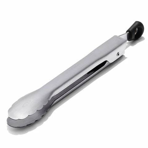 OXO tongs feature brushed stainless steel and Easily lock in the closed position for convenient storage.