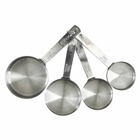 - Includes four measuring cups ranging from ¼ cup to one full cup.