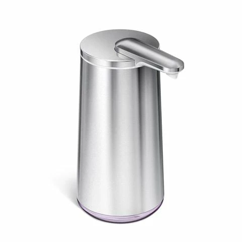 Simplehuman pumps can be used to dispense hand sanitiser, washing up liquid, lotion, and any liquid soap that does not contain exfoliants or moisturising beads.